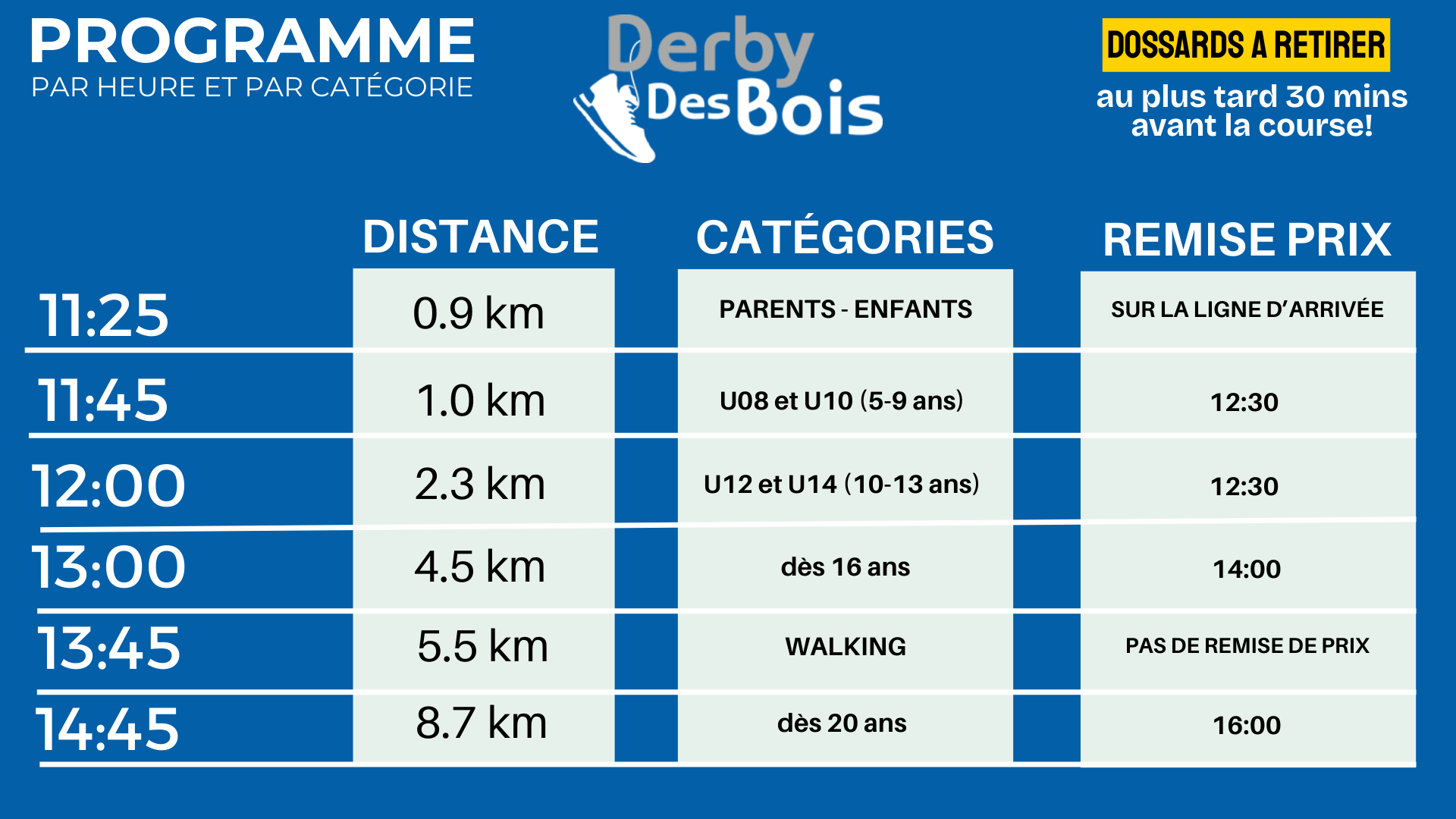Les coureurs qui ne prendront pas le départ dans la catégorie correspondante à leurs inscriptions ne seront pas classés.